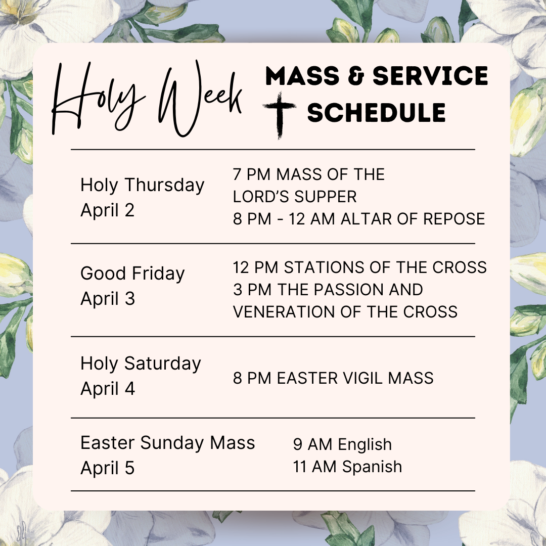 Tuesday: 5:00 PM Confession, 5:30 PM Mass