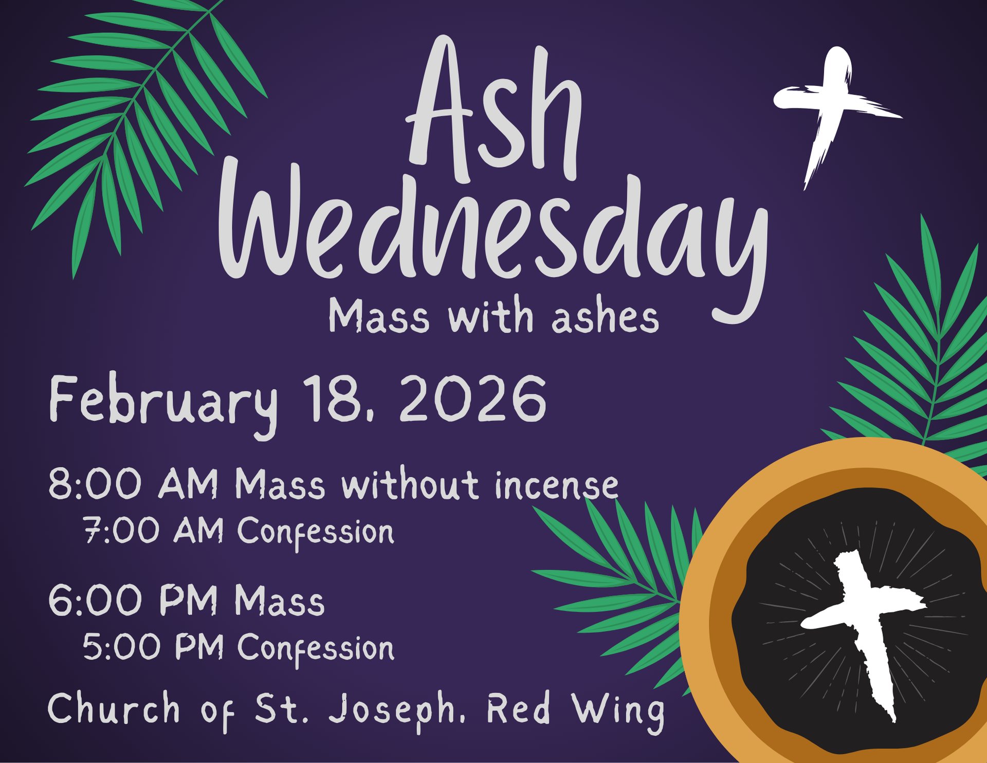 Wednesday: 7:30 AM Confession, 8:00 AM Mass